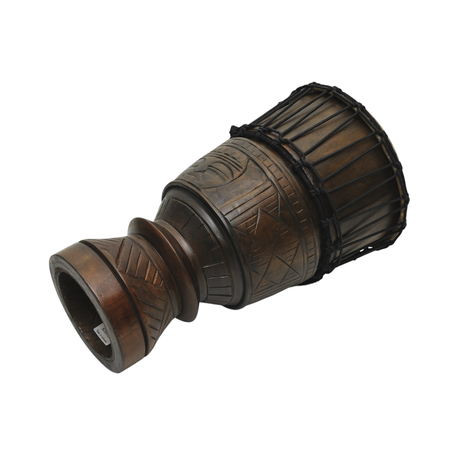 Korpus wykonany z jednego kawałka drewna mahoniowego, membrana z wysokiej jakości naturalnej skóry naciągnięta jest za pomocą specjalnie splatanego mocnego sznura co zapewnia długotrwałe trzymanie stroju.