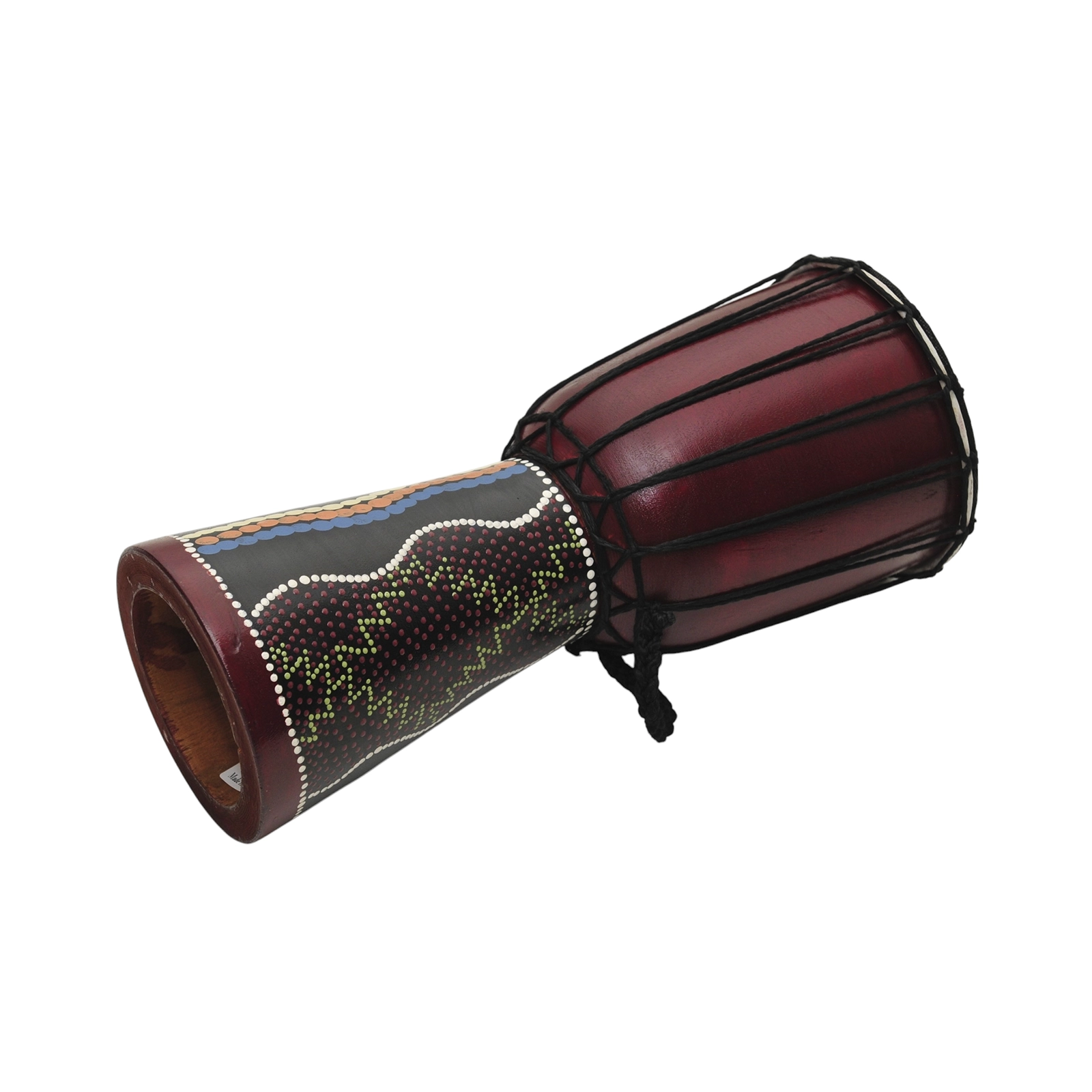 Djembe bardzo oryginalnie, barwnie zdobione z pięknymi etnicznymi rzeźbieniami. Wyposażone w wygodny uchwyt.