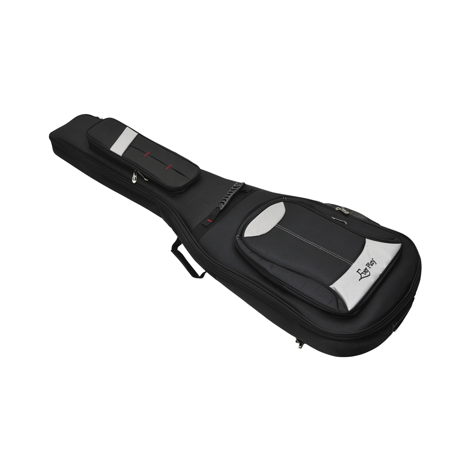 Aż trzy praktyczne kieszenie pomieszczą niezbędne akcesoria, dodatkowa siatka boczna na np: napój oraz uchwyt ukryty w górnej części pokrowca pozwalający zawiesić instrument w pokrowcu, siatka z pianką na tylnej ściance chroni przed przyleganiem pokrowca do pleców oraz zwiększa komfort przenoszenia instrumentu.