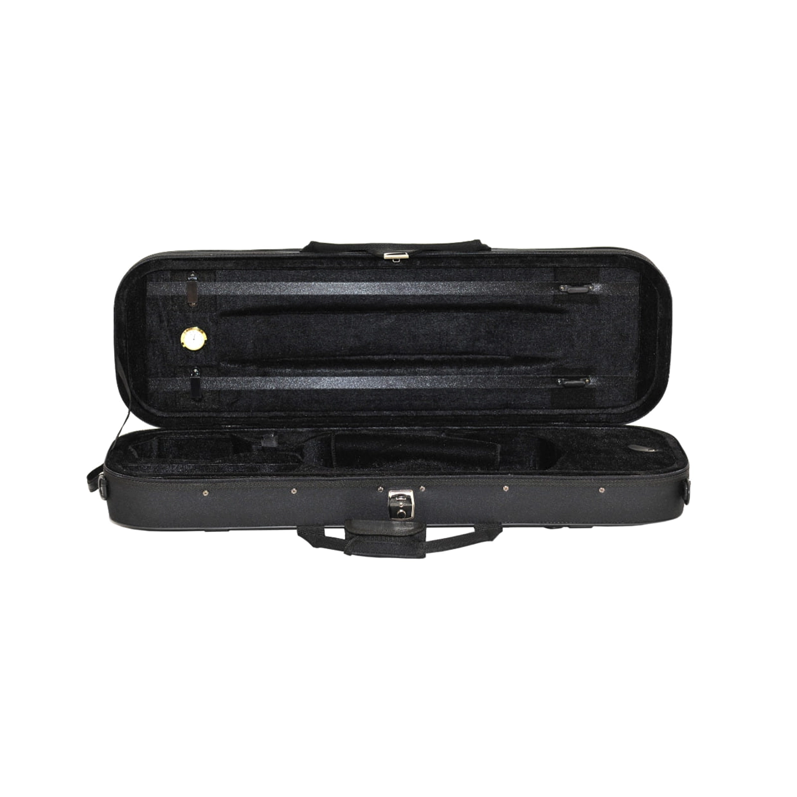 Wnętrze futerału pokryte jest miękkim welurem doskonale chroniącym skrzypce przed uszkodzeniami mechanicznymi. Dopasowana kształtowa komora zabezpiecza instrument przed przesuwaniem się podczas transportu.